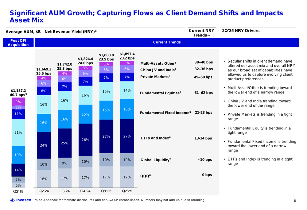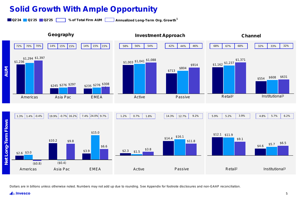 While the Americas region experienced slight outflows of $0.8 billion in Q2 2025, Asia Pacific contributed $9.8 billion and EMEA added $6.6 billion in net long-term flows. This geographic diversification has provided Invesco with resilience against regional market fluctuations.