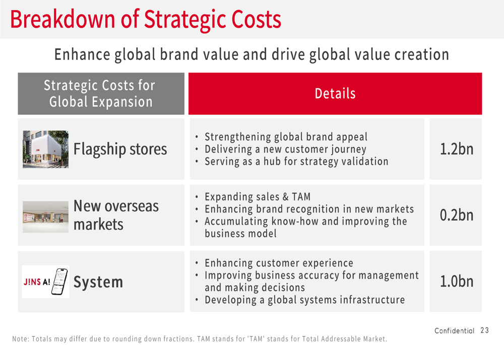 The company has outlined significant strategic costs totaling 2.4 billion yen for FY8/26, focused on global expansion initiatives. As shown in the breakdown below, these investments include flagship stores (1.2 billion yen), new overseas markets (0.2 billion yen), and system upgrades (1.0 billion yen):