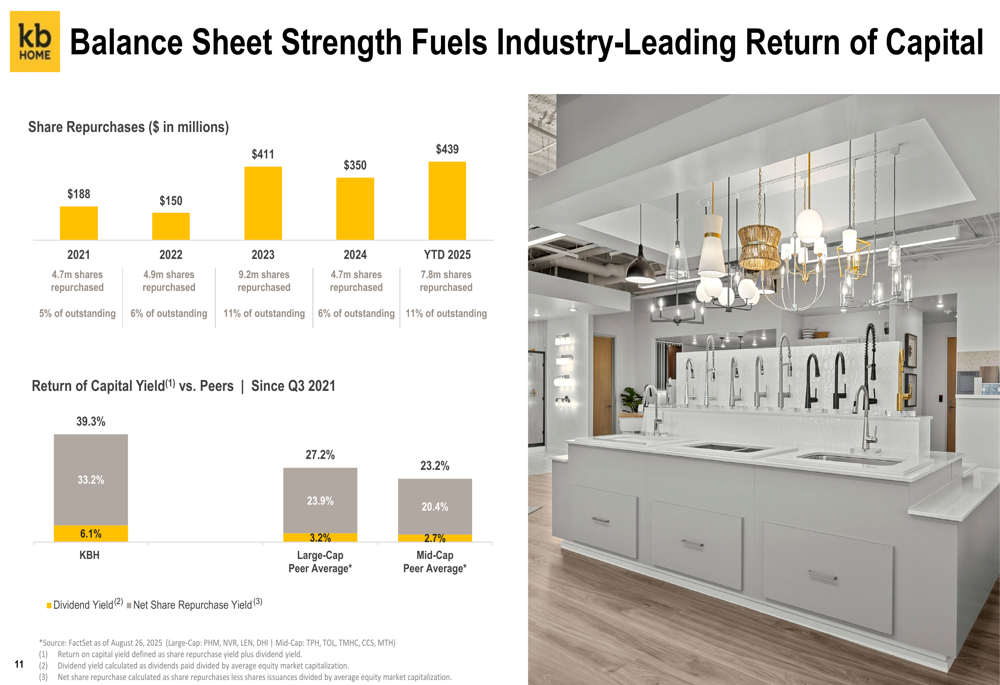 KB Home’s capital return yield of 39.3% since Q3 2021 significantly outpaces its peer group averages:
