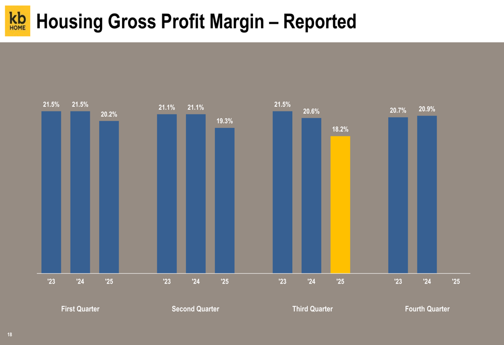 Profitability metrics also faced pressure, with the housing gross profit margin declining to 18.2% in Q3 2025 from 20.6% in Q3 2024: