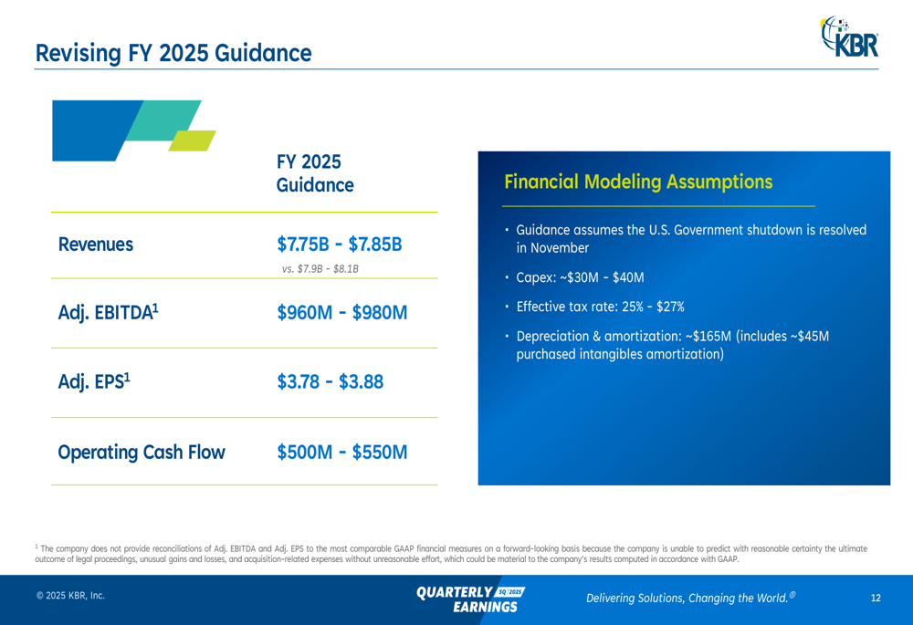 CFO Mark Sopp noted, "Our guidance assumes the U.S. Government shutdown is resolved in November," highlighting the potential impact of government funding uncertainties on the company’s outlook. Despite these challenges, KBR emphasized that over 60% of its adjusted EBITDA has no exposure to the U.S. government, providing some insulation from federal budget fluctuations.