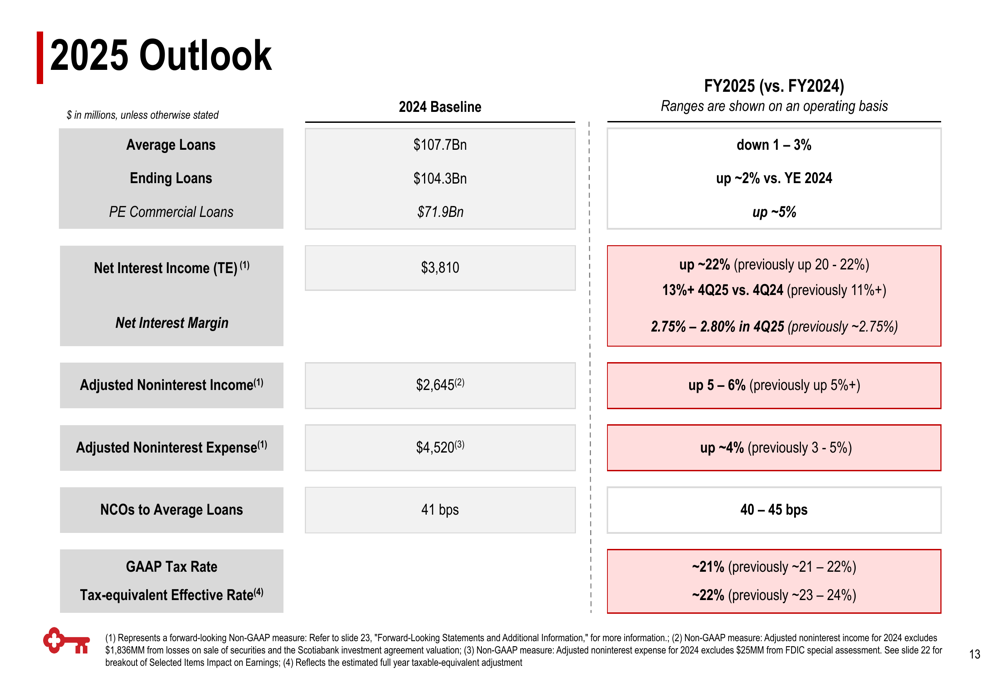 Looking ahead, KeyCorp provided an updated outlook for 2025, raising some of its previous guidance. The company now expects net interest income to increase by approximately 22% (previously 20-22%) and noninterest income to grow by 5-6% (previously 5%+). Net interest margin is projected to reach 2.75-2.80% in Q4 2025, slightly higher than the previous guidance of approximately 2.75%.
