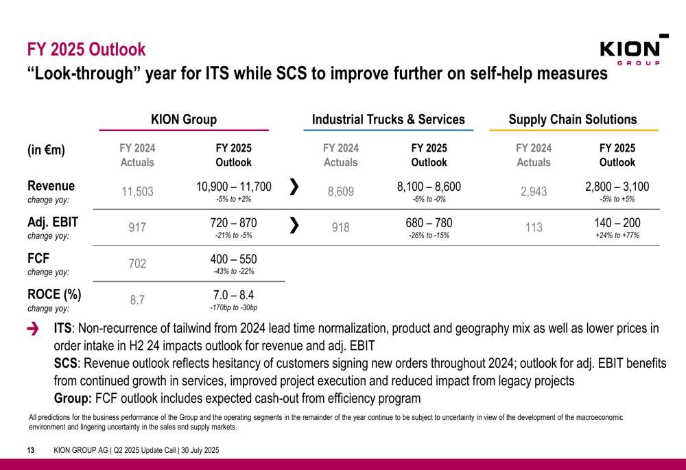 The detailed outlook by segment provides further clarity on KION’s expectations: