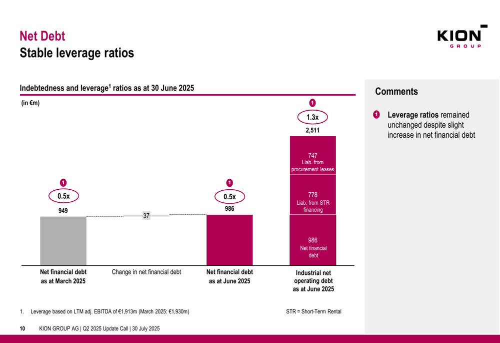 The company maintained a stable financial position, with net financial debt of €986 million and an unchanged leverage ratio of 0.5x. This stability provides KION with flexibility to navigate current market uncertainties while continuing to invest in strategic initiatives.