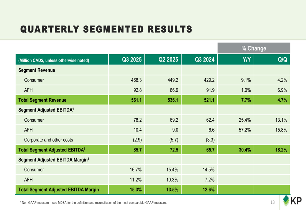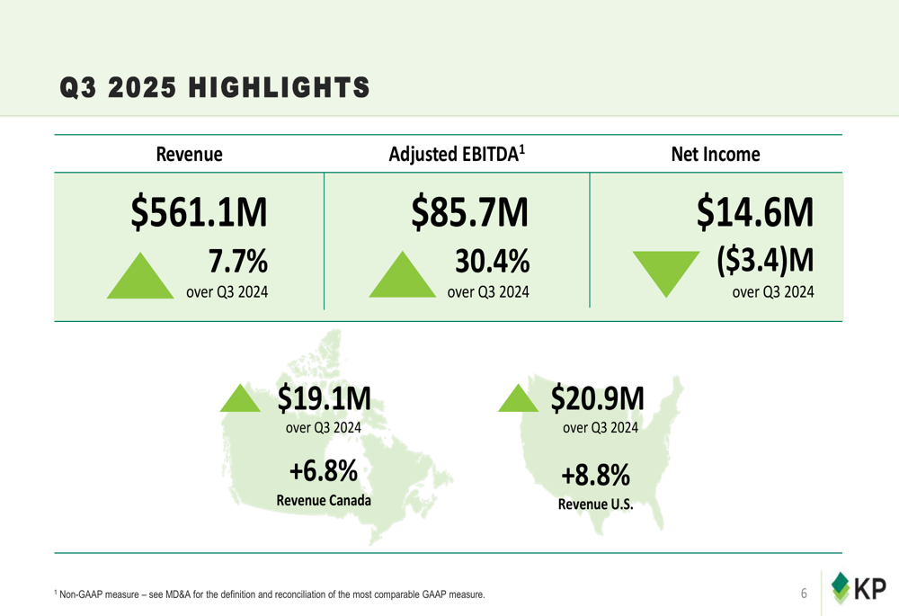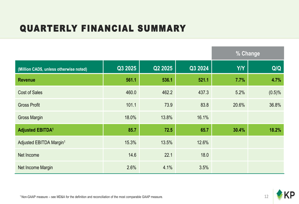 KP Tissue Inc. (TSX:KPT) presented its third-quarter 2025 financial results on November 13, showcasing strong performance across its business segments. The company, which holds leading positions in multiple tissue product categories in North America, reported significant year-over-year growth in both revenue and profitability, outperforming analyst expectations.