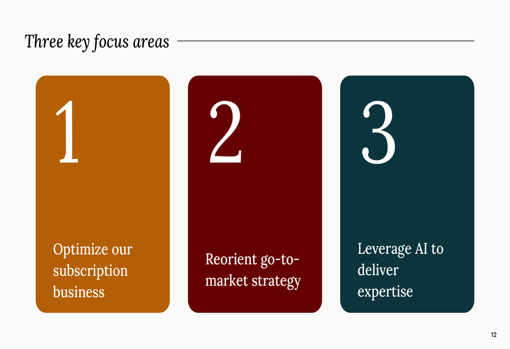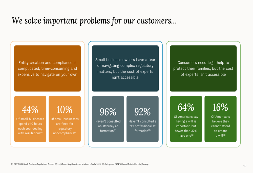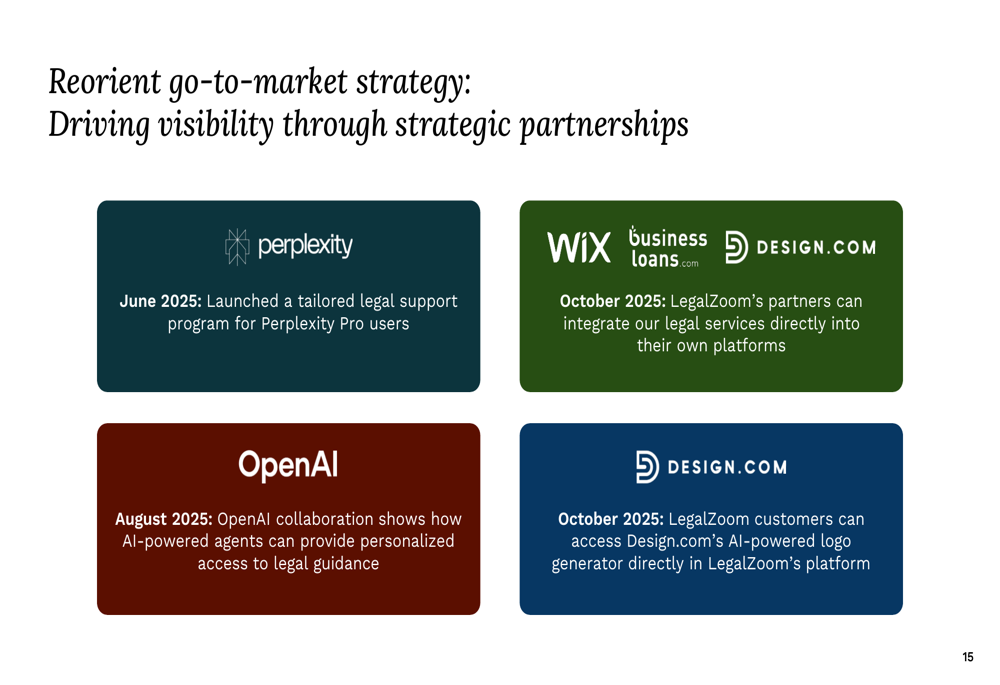 LegalZoom outlined three key strategic focus areas in its presentation: optimizing the subscription business, reorienting its go-to-market strategy, and leveraging artificial intelligence to deliver expertise.