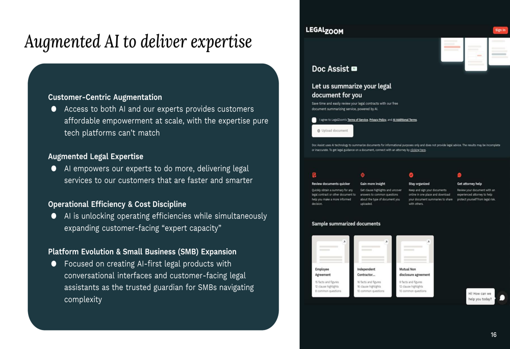 Perhaps most notably, LegalZoom is accelerating its AI integration to enhance service delivery and operational efficiency. The company's "Doc Assist" feature exemplifies this approach by combining AI capabilities with human expertise: