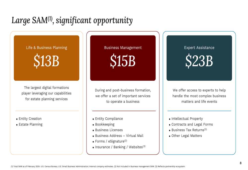 LegalZoom operates in a large, fragmented market with significant growth potential. The company estimates its serviceable addressable market (SAM) at $51 billion across three main categories: