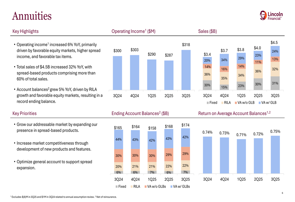 The Annuities segment, a cornerstone of Lincoln’s business, delivered a 6% year-over-year increase in operating income to $318 million. This growth was driven by favorable equity markets, higher spread income, and favorable tax items. Total annuity sales increased by 32% year-over-year to $4.5 billion, while account balances grew by 5%.