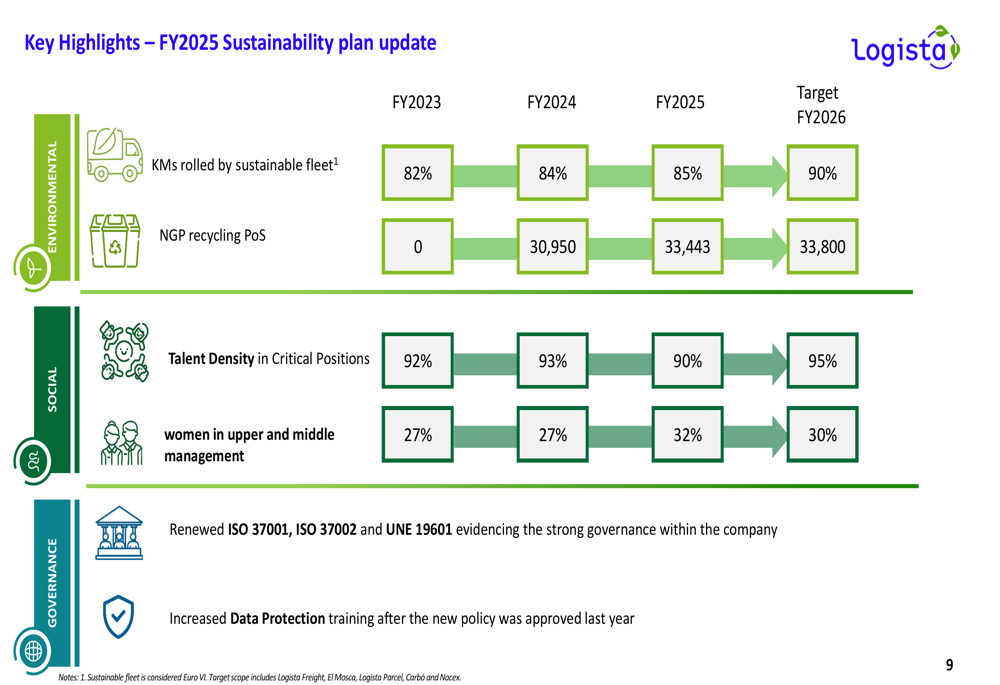 Logista continues to advance its sustainability agenda through its 2024-2026 plan. The company has made progress across environmental, social, and governance metrics, with particularly strong performance in increasing women in management positions.