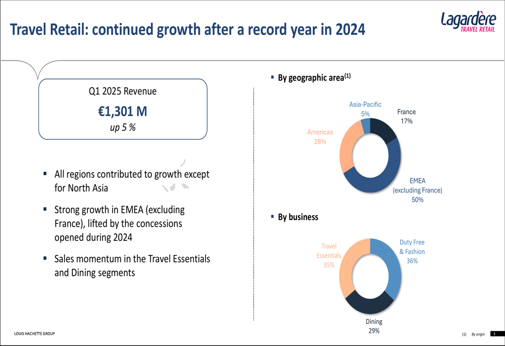 All regions contributed to growth except North Asia, with particularly strong performance in EMEA (excluding France), driven by concessions opened during 2024. The division also reported strong sales momentum in Travel Essentials and Dining segments.