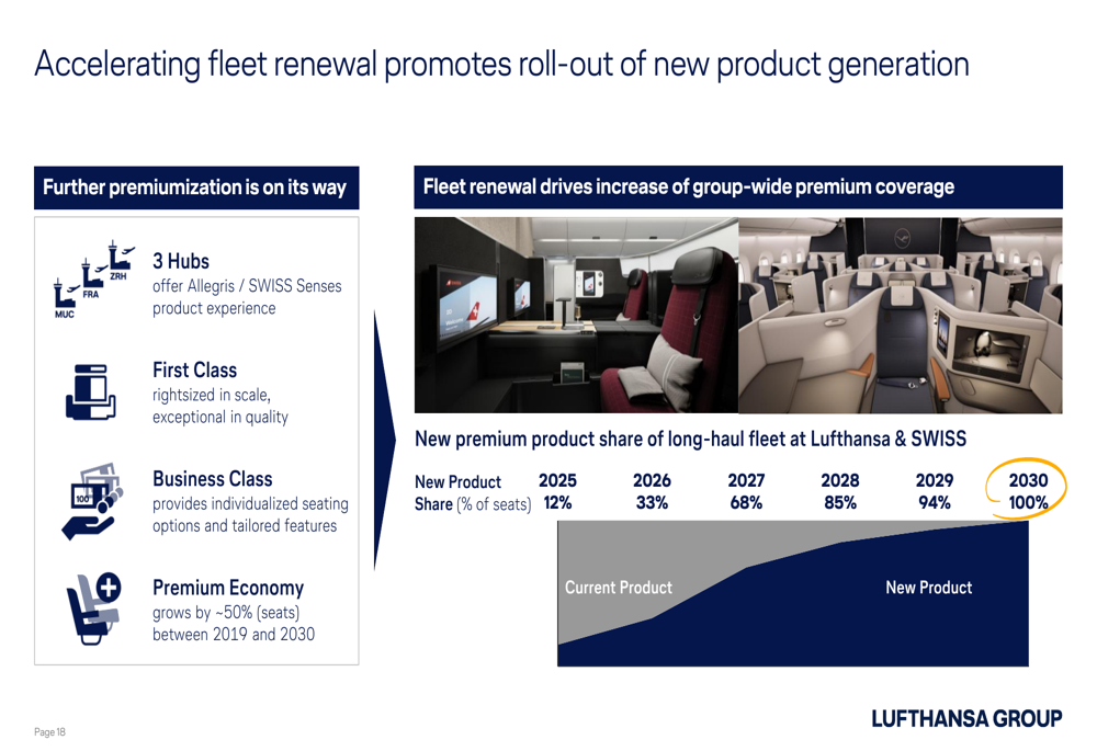Lufthansa is advancing its premium strategy with the delivery of its first Boeing 787 Dreamliner in September 2025, featuring the new Allegris cabin. The company plans to rapidly expand its premium product offering across its long-haul fleet: