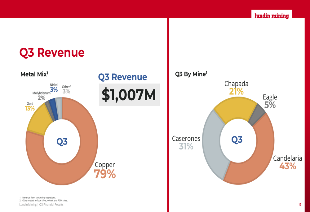Lundin Mining delivered significant operational improvements in the third quarter, with copper production reaching 87 kilotonnes, up from 80 kilotonnes in the previous quarter. Gold production remained steady at 38 thousand ounces, matching Q2 levels.