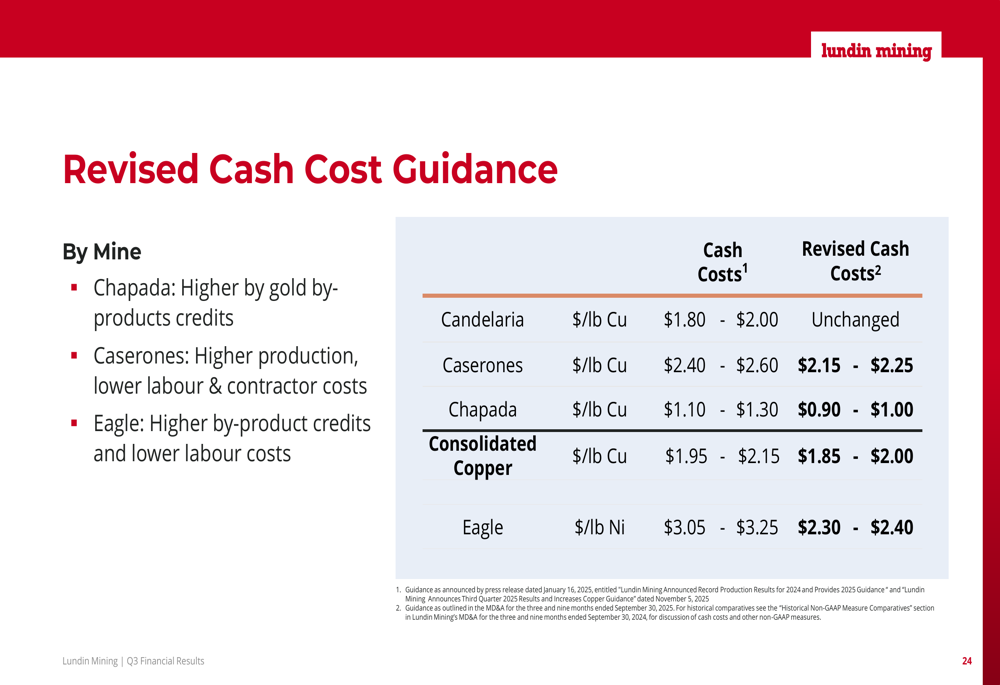 Lundin Mining’s updated guidance reflects management’s confidence in continued operational improvements. The company increased its copper production guidance while simultaneously reducing its cash cost forecast: