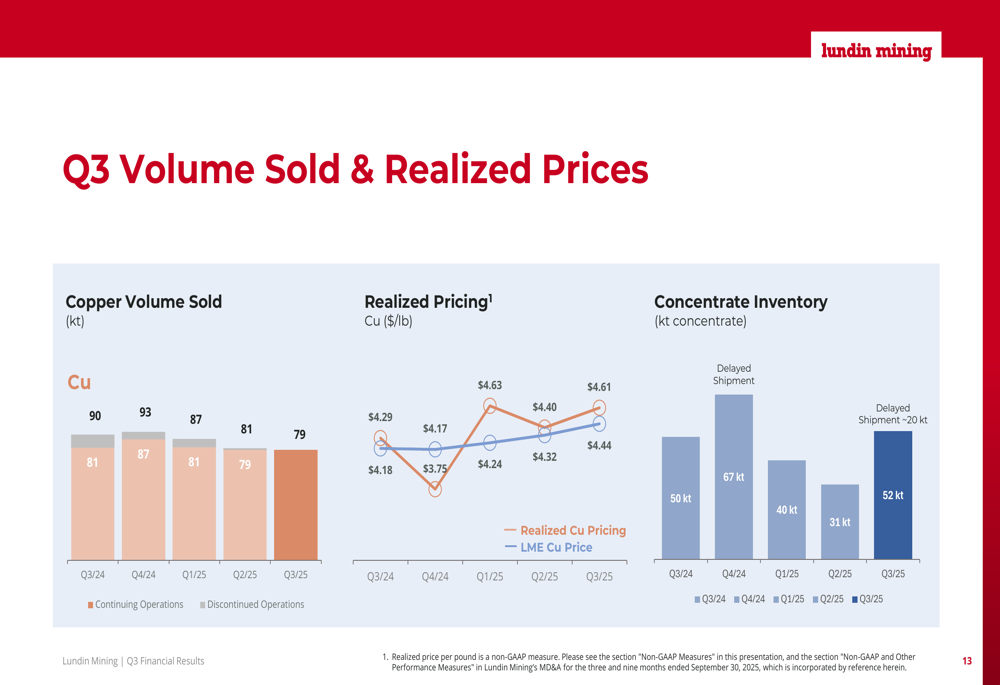 A key driver of improved financial performance was the higher realized copper price of $4.61 per pound in Q3, compared to $4.24 per pound in Q2: