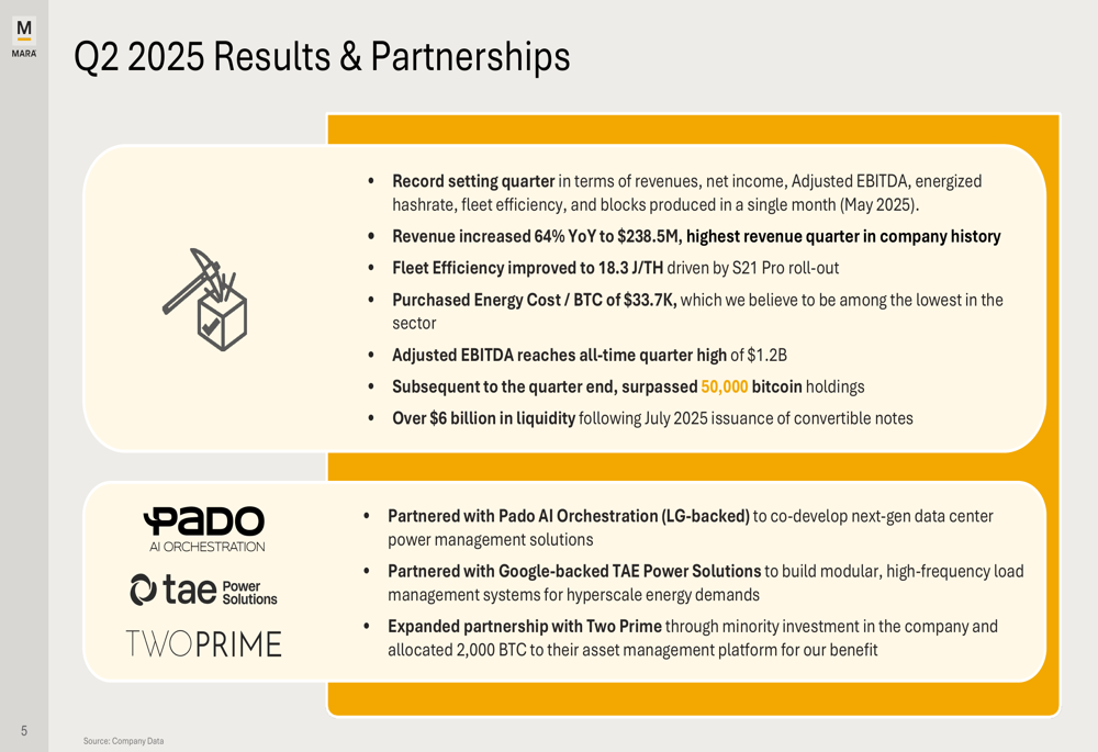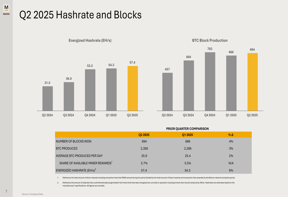 Marathon Digital’s Q2 2025 presentation demonstrates the company’s strong position in the Bitcoin mining sector, with record financial results, improved operational efficiency, and strategic global expansion. However, the stock’s aftermarket decline suggests investors remain cautious about the sustainability of these results amid broader cryptocurrency market volatility.