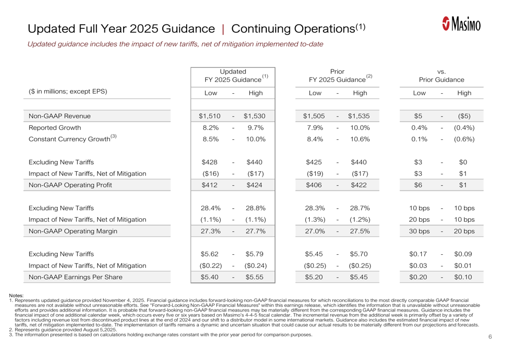 Despite the tariff challenges, Masimo raised its full-year guidance for 2025. The company now expects non-GAAP revenue between $1,510 million and $1,530 million, representing 8.5-10.0% growth on a constant currency basis.