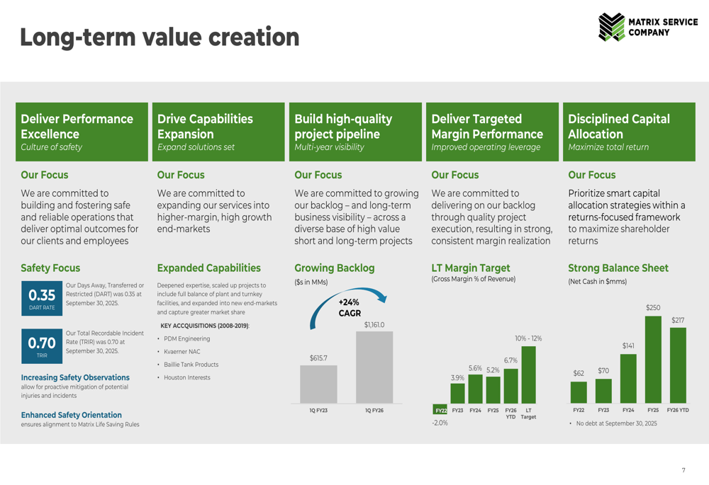 As Matrix Service continues executing its strategic framework focused on winning new projects, safe and reliable execution, and delivering sustainable performance, the coming quarters will be crucial in determining whether this positive momentum can be maintained and accelerated.