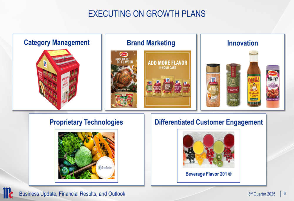 These strategic initiatives appear to be yielding results in key areas, with the presentation highlighting strong volume growth in Spices and Seasonings across all regions, continued share gains in Mustard, and solid Hot Sauce performance.