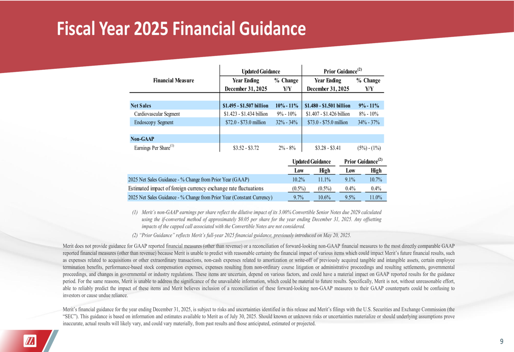 Based on strong first-half performance and confidence in its growth initiatives, Merit Medical raised its full-year 2025 guidance. The company now expects total revenue between $1.495 billion and $1.507 billion, representing year-over-year growth of 10-11%, up from its previous guidance of 9-11% growth.