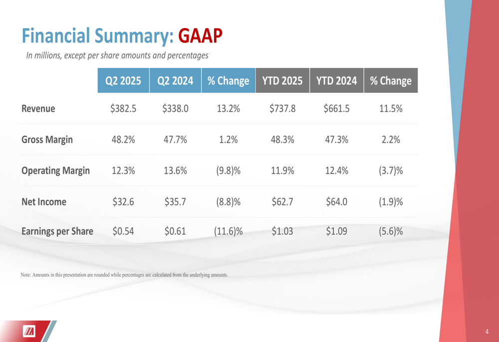 Merit Medical delivered robust financial results for Q2 2025, with total revenue reaching $382.5 million, representing a 13.2% increase compared to the same period last year. On a non-GAAP basis, which accounts for currency fluctuations and organic growth, revenue grew 6.7% to $360.6 million.