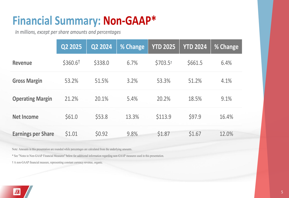 The company achieved its highest non-GAAP operating margin in company history at 21.2%, an improvement of 5.4% compared to Q2 2024. This margin expansion demonstrates Merit’s ability to drive operational efficiencies while growing its top line.