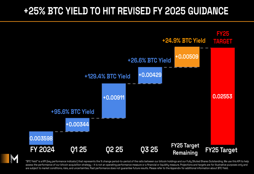 The company’s progress toward its fiscal year 2025 BTC Yield guidance is shown in the following chart: