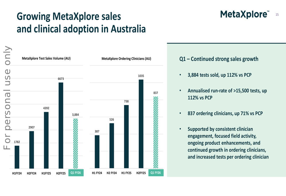 The company has introduced new product features to enhance adoption, including "Practitioner Pays," which allows healthcare practitioners to order and pay for MetaXplore tests directly on behalf of patients, and "Admin Accounts," designed to ease administrative workload in busy, multi-practitioner clinics.