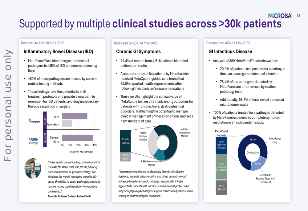 The following slide demonstrates the clinical evidence supporting Microba’s products: