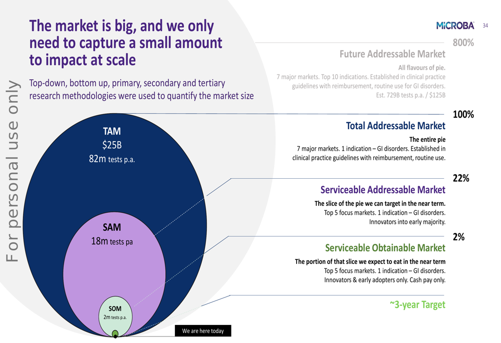 The company’s market opportunity assessment shows a progression from its current serviceable obtainable market to a much larger total addressable market as adoption increases: