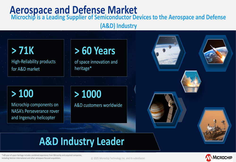 Microchip highlighted its strong position in the Aerospace and Defense (A&D) market, where it offers over 71,000 high-reliability products and serves more than 1,000 A&D customers worldwide. The company emphasized its 60+ years of space innovation heritage, including having more than 100 components on NASA’s Perseverance rover and Ingenuity helicopter.
