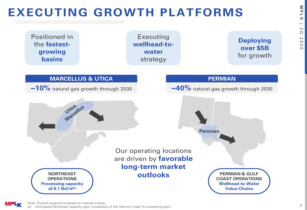 The following slide illustrates MPLX's growth platforms and basin positioning: