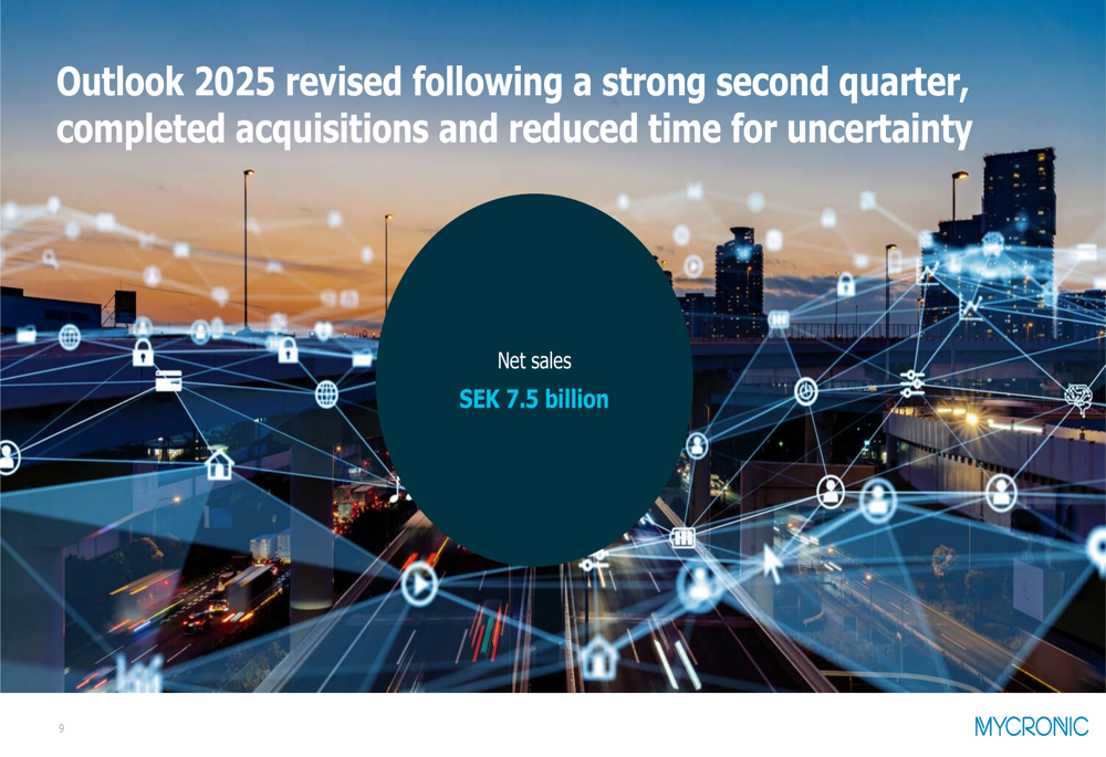 Based on strong second-quarter performance, completed acquisitions, and reduced uncertainty, Mycronic has revised its 2025 outlook upward with a net sales target of SEK 7.5 billion: