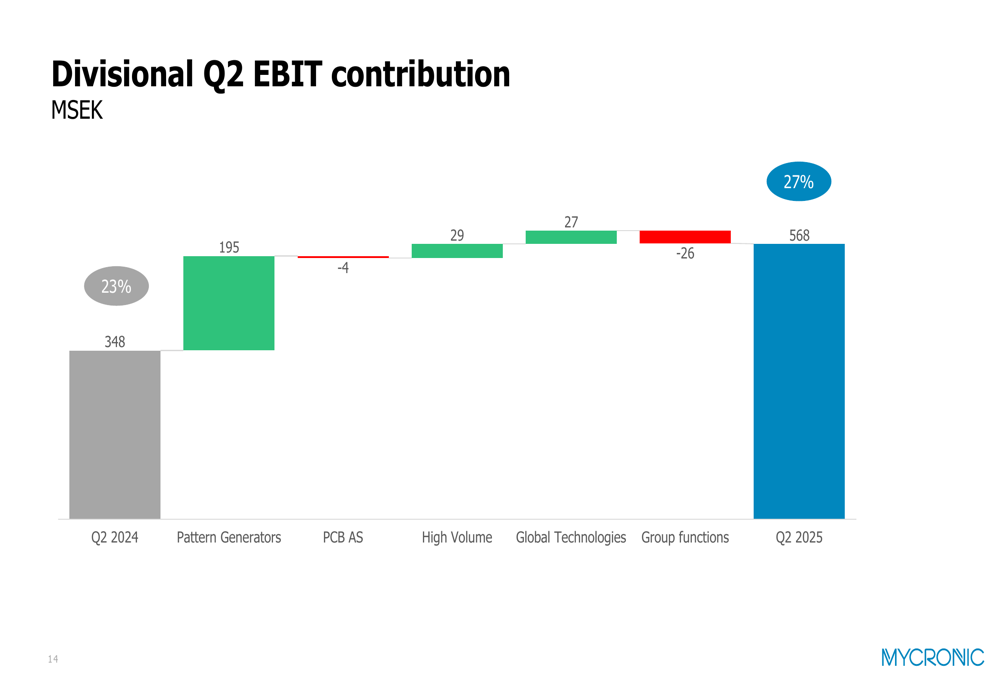 Looking at divisional contributions, Pattern Generators was the main driver of EBIT growth with a SEK 195 million positive impact: