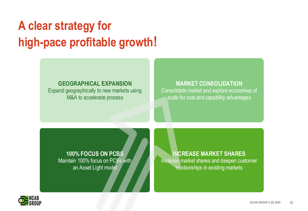 NCAB’s management expressed cautious optimism about future growth, highlighting the gradual improvement in order intake as a positive indicator. The company plans to continue its merger and acquisition activities to drive consolidation in the fragmented PCB market.
