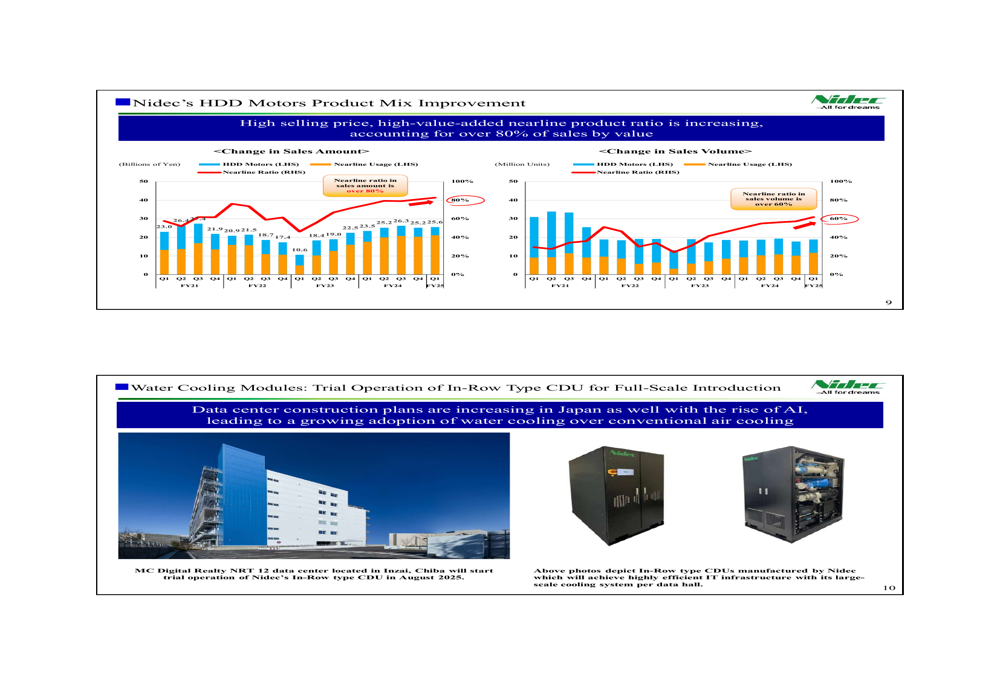 Nidec is pursuing several strategic initiatives to enhance its competitive position in high-growth markets. One notable development is the improvement in the company’s HDD motors product mix, with a focus on high-value-added nearline products: