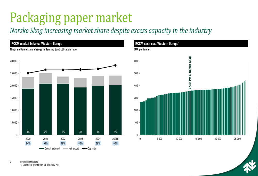 In contrast, the recycled containerboard (RCCM) market shows more stability with an 86% utilization rate in 2025, offering better long-term prospects for Norske Skog’s strategic pivot.