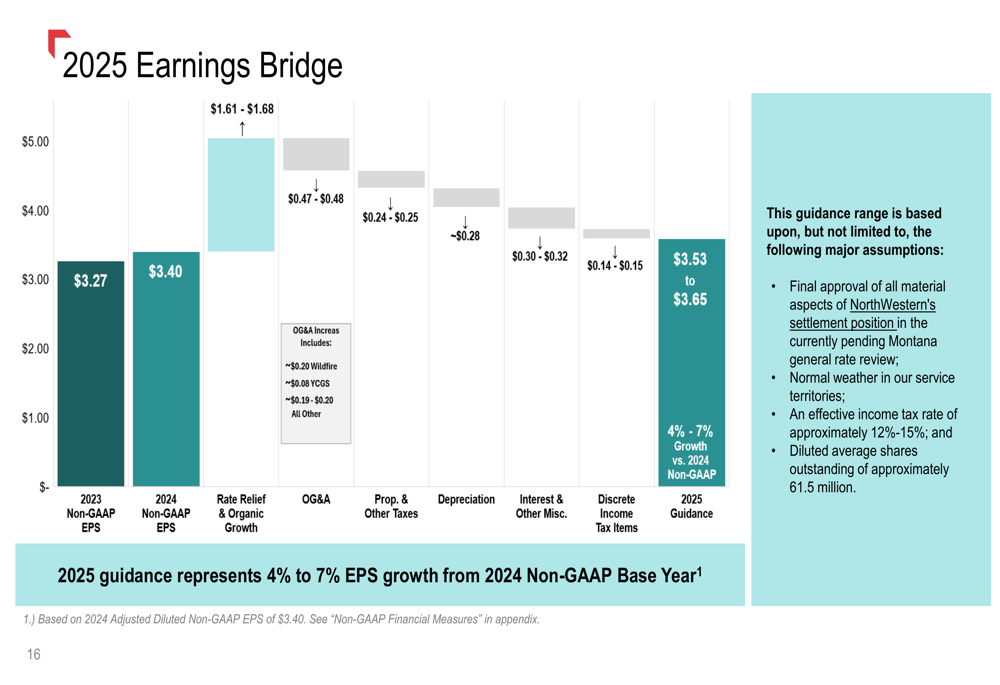 NorthWestern’s 2025 earnings bridge provides a detailed breakdown of factors expected to influence earnings performance: