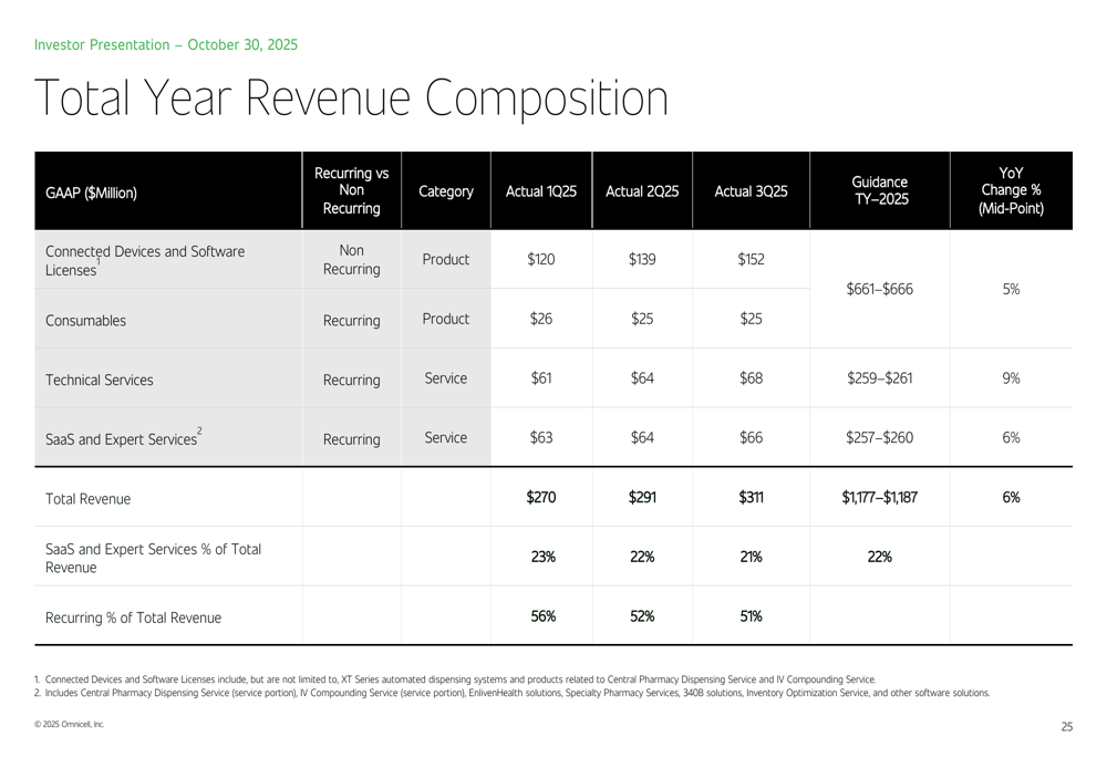 Omnicell provided detailed guidance for Q4 and full-year 2025, projecting continued growth across its business segments: