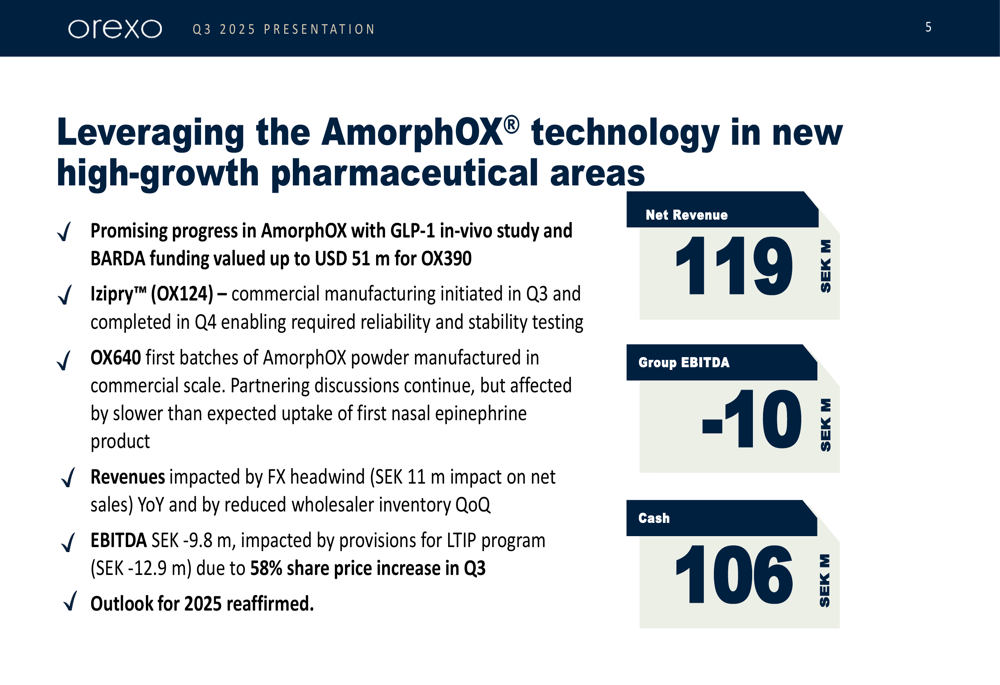 Despite financial challenges, Orexo highlighted several promising developments in its product pipeline, particularly around its AmorphOX technology platform.