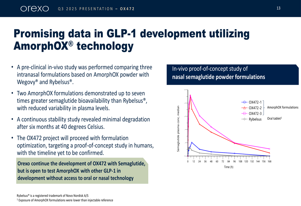 Preclinical data for OX472 appears promising, with the company reporting that two AmorphOX formulations demonstrated up to seven times greater semaglutide bioavailability than Rybelsus: