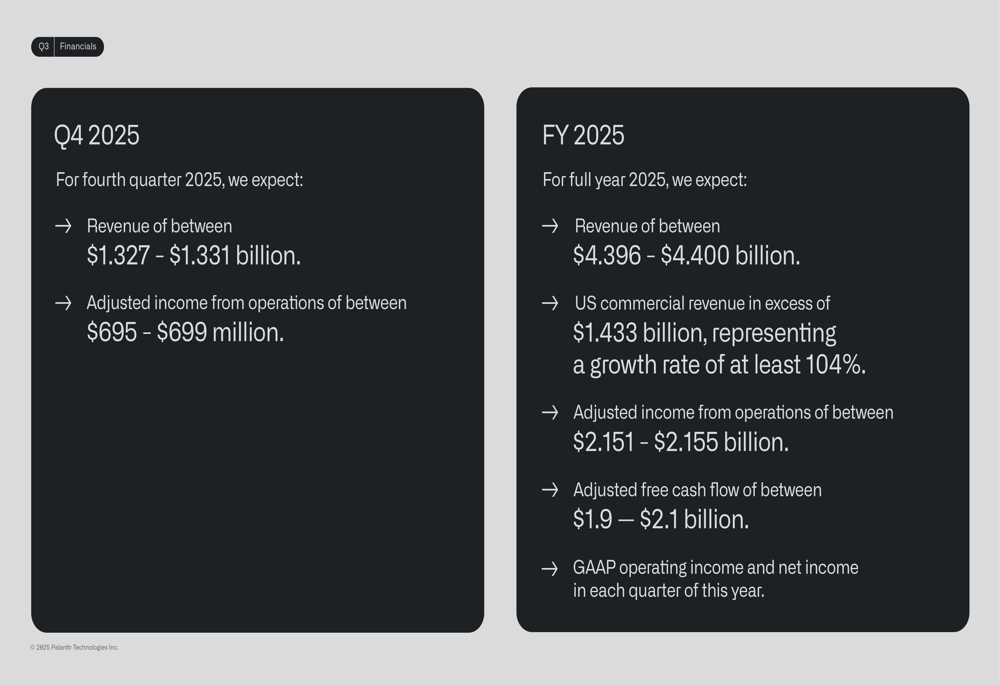 Looking ahead, Palantir provided strong guidance for Q4 and the full fiscal year 2025: