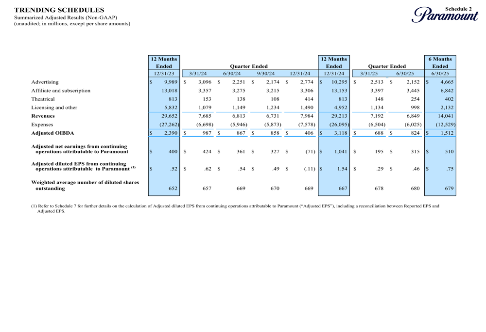 Meanwhile, the Filmed Entertainment segment continued to struggle, reporting negative adjusted OIBDA of $64 million for Q2 2025, despite theatrical revenue of $402 million.
