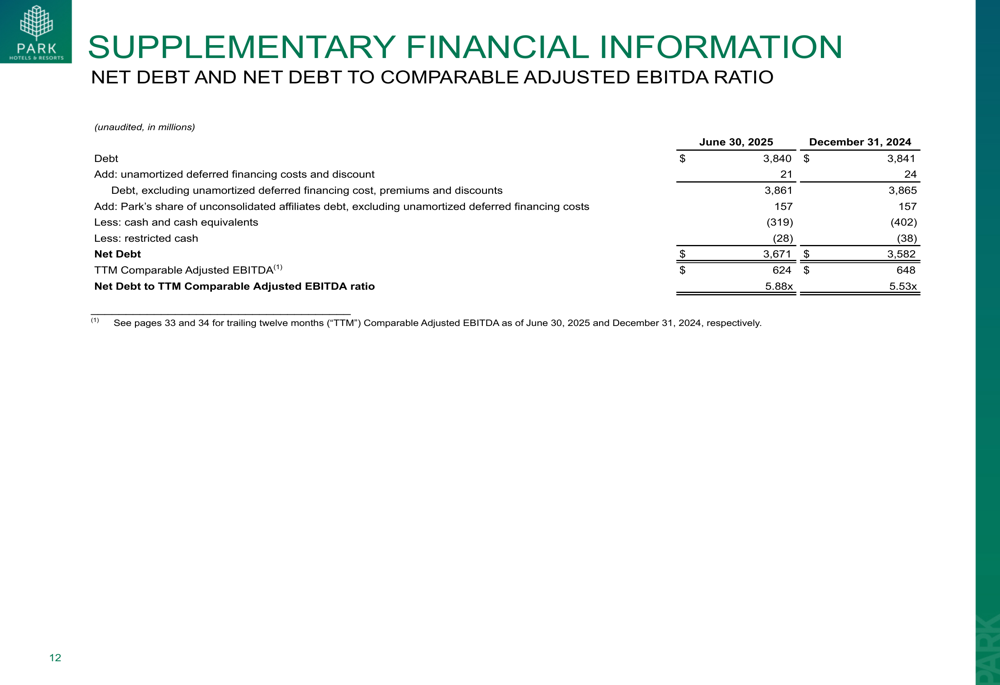 Park’s leverage position has slightly deteriorated, with Net Debt to TTM Comparable Adjusted EBITDA ratio increasing to 5.88x as of June 2025 from 5.53x in December 2024: