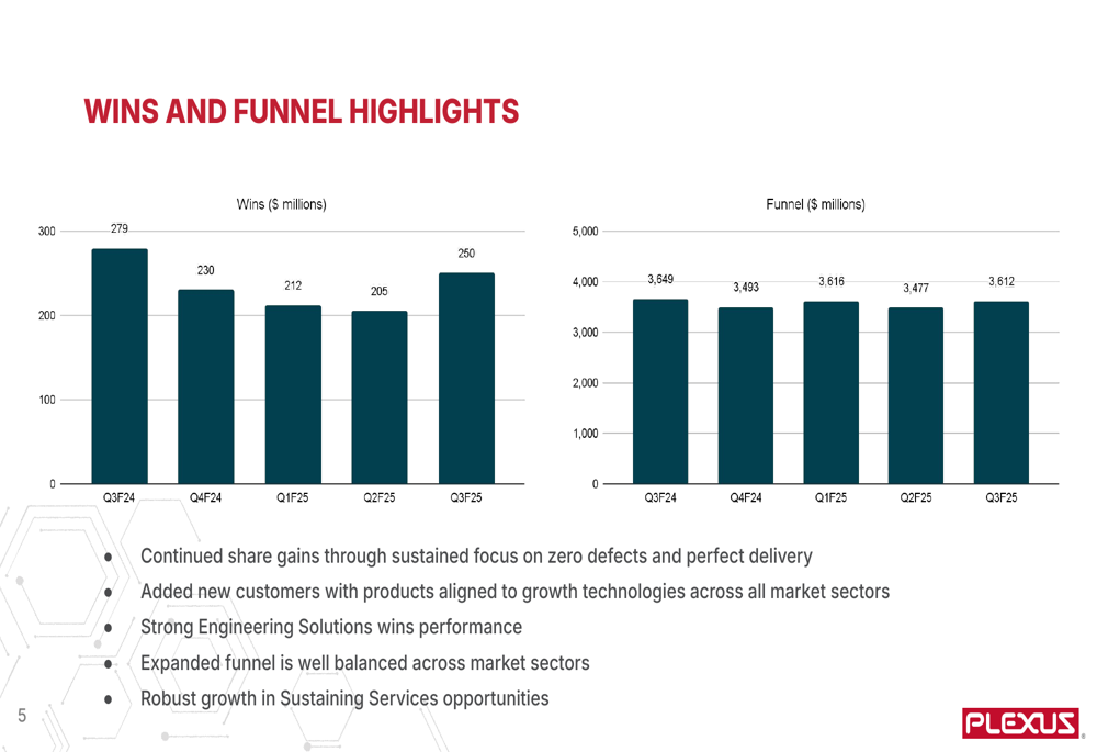 In the Aerospace/Defense sector, Plexus reported Q3 revenue of $183 million, a 6% increase from the previous quarter. The company secured $51 million in new wins, including a new customer supporting satellite networks and broad-based wins in defense and space. Management expects this sector to remain flat in Q4 but projects robust growth in fiscal 2026.