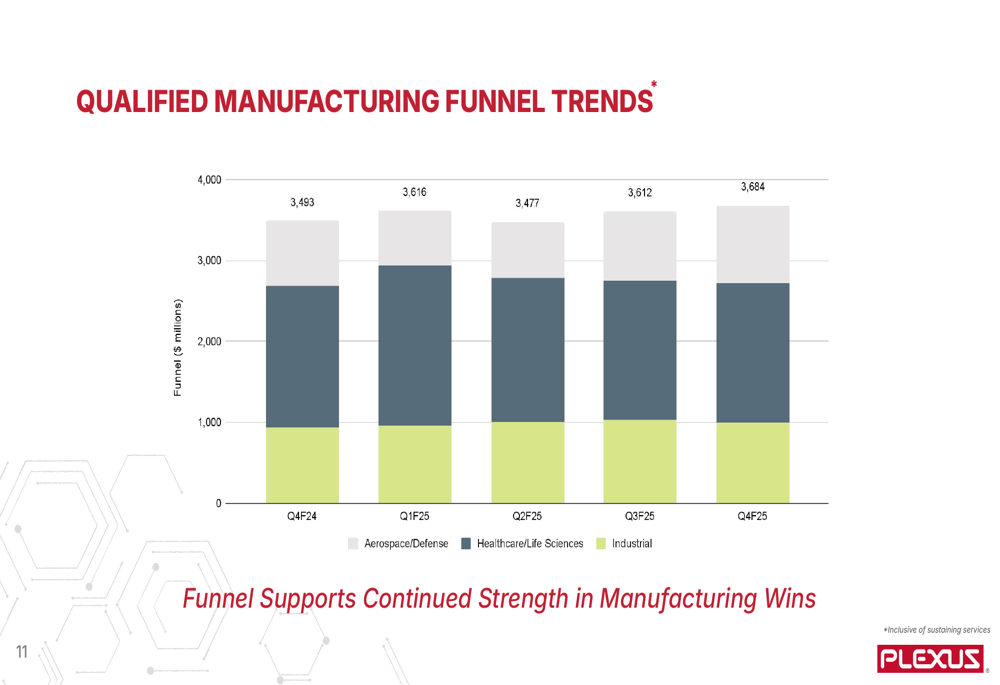The qualified manufacturing funnel, which provides visibility into future business opportunities, remained robust across all sectors: