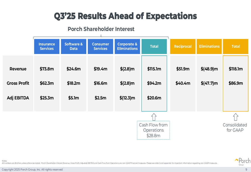 Based on strong Q3 performance, Porch Group updated its 2025 guidance: