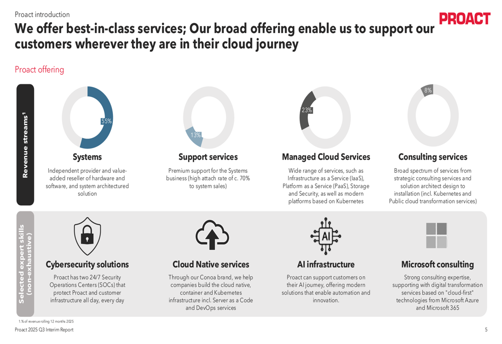 Proact continues to position itself as a leading European IT expert in the growing markets of hybrid cloud solutions, cybersecurity, and AI infrastructure. The company serves approximately 4,000 customers across Europe with around 1,200 employees.