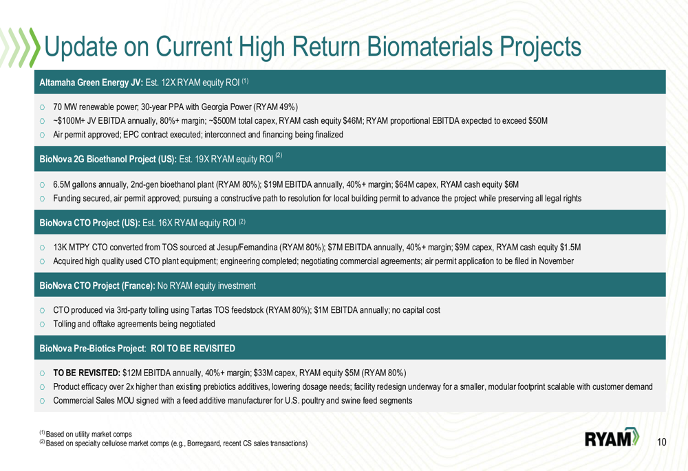 Notable projects include the Altamaha Green Energy JV, expected to generate over $100 million in annual JV EBITDA (with RYAM's proportional EBITDA exceeding $50 million), and the BioNova 2G Bioethanol Project, projected to contribute $19 million in annual EBITDA.