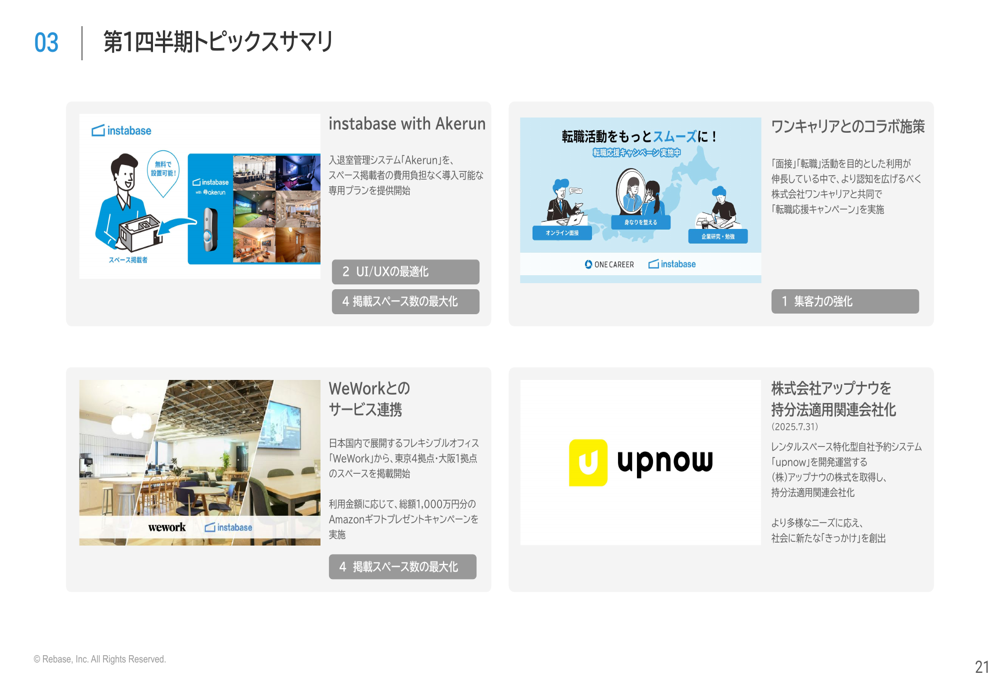 The company highlighted several strategic partnerships and initiatives from Q1, including collaborations with Akerun, One Career, and WeWork, as well as the acquisition of UpNow as a subsidiary: